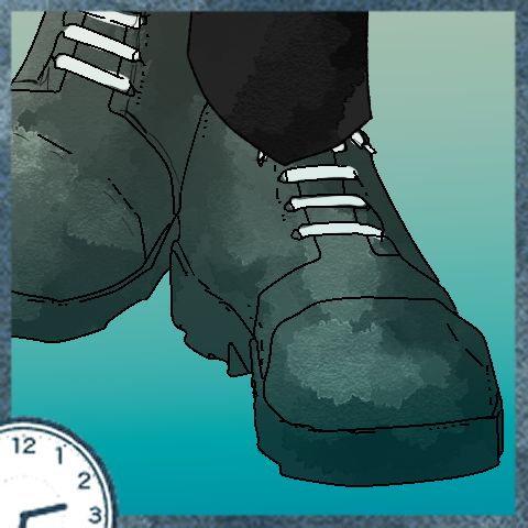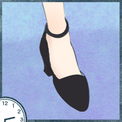 はじめに映るのは下ろしたてのミュールの爪先。